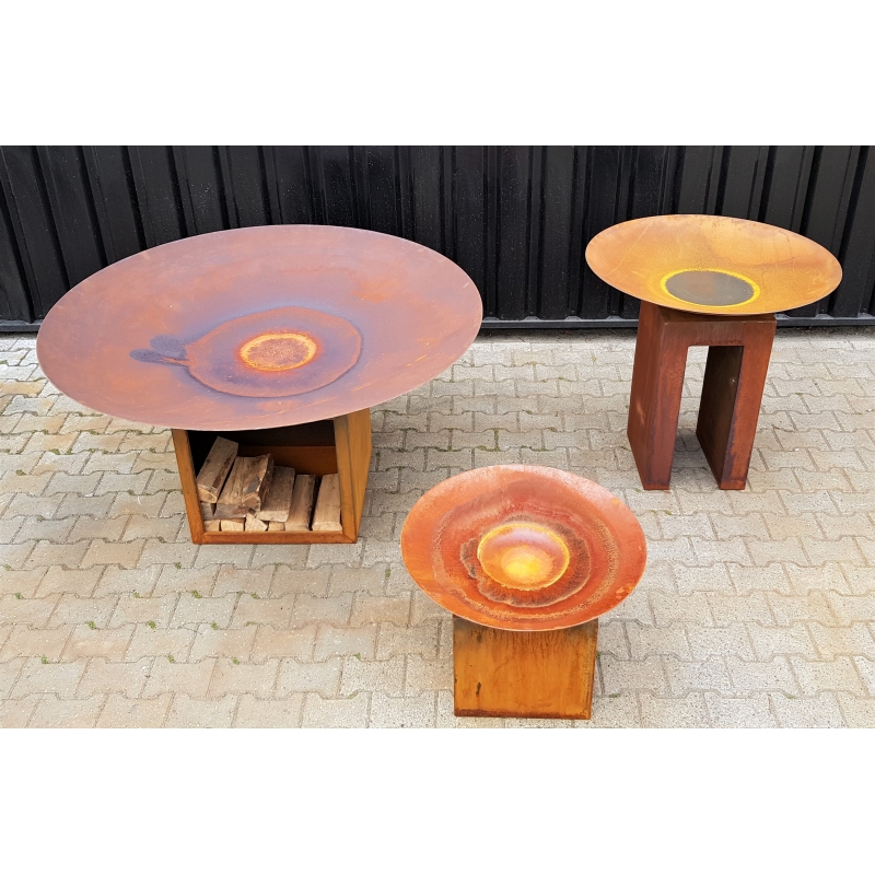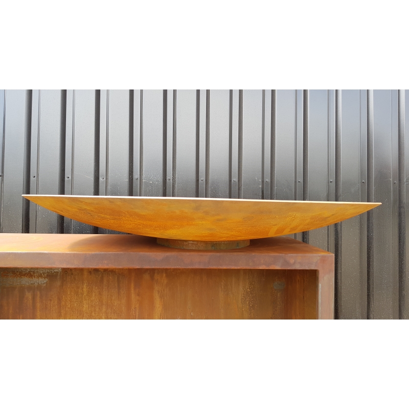 Diese elegante Feuerschale Cortenstahl 100 X-Flat hat einem Diameter von 100 cm. Die Schale wird mit einem losen Ring aus Cortenstahl geliefert. Dieser Ring stabilisiert nicht nur die Feuer/Wasserschale sondern ermöglicht auch auf etwas schrägem Untergrund ein waagerechtes Aufstellen der Schale.