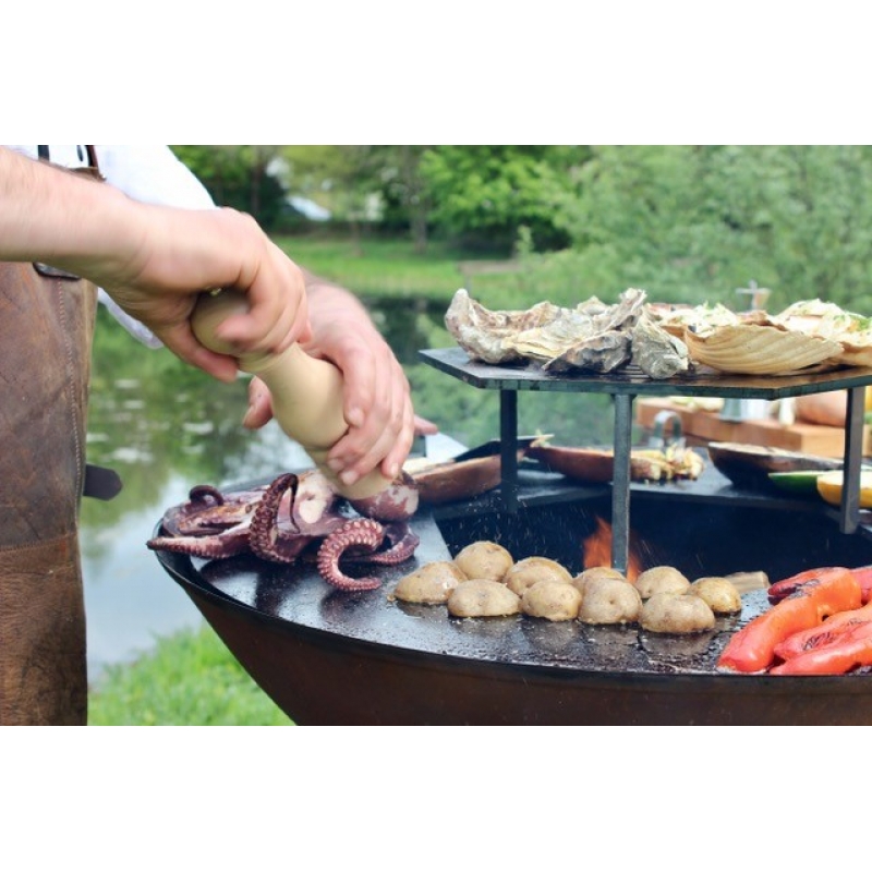 Der Aufsatz Dot 90 und Dot BBQ 90 mit Grillschlitzen gefertigt aus speziellem Stahl erweitert die Kochoberfläche. Diese Aufsätze kann man mit den feuerfesten Handschuhen Gloves einfach entfernen und die Abdeckplatte auf die heisse Schale legen.