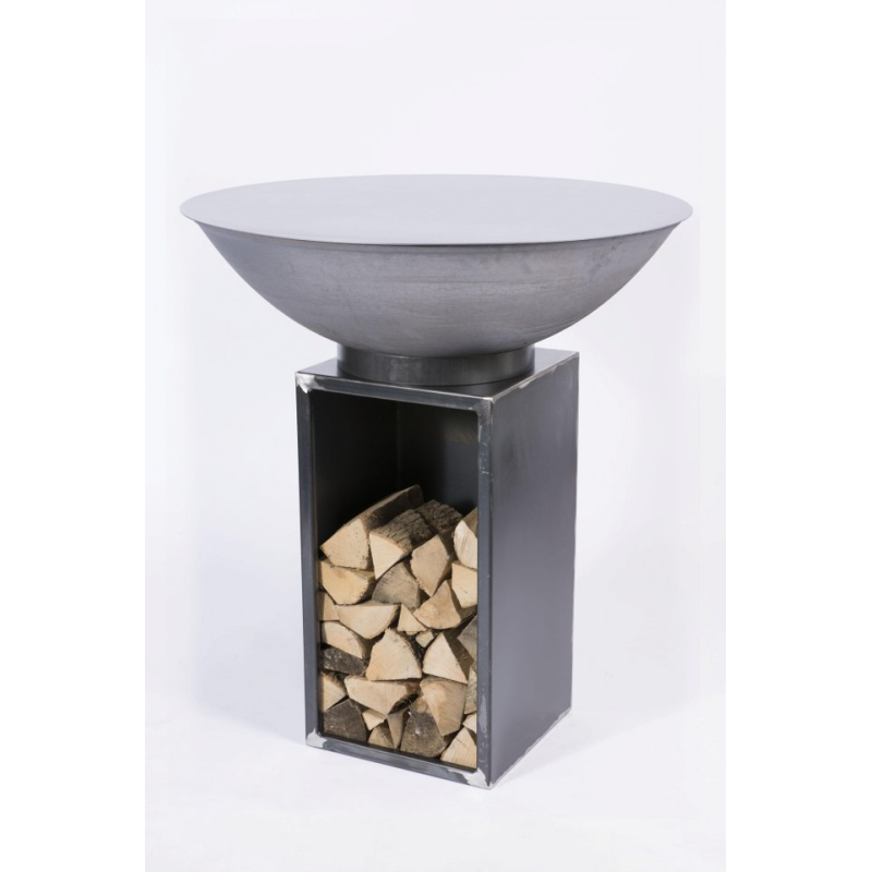The Woodstock Säule aus Cortenstahl 40x40 cm ist durch seine Höhe von 75 cm ideal zum stehenden Kochen, doch kann man darin auch das nötige Brennholz schlichten oder andere Zubehöre aufbewahren.