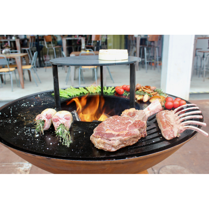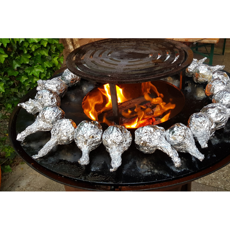 Der Abstand zwischen Schale und Ring ermöglicht Luftzufuhr, sodass sich das Flammenspiel optimal entwickeln kann. Der GrillRing ist nach Wunsch selbst in der Höhe zu verstellen.