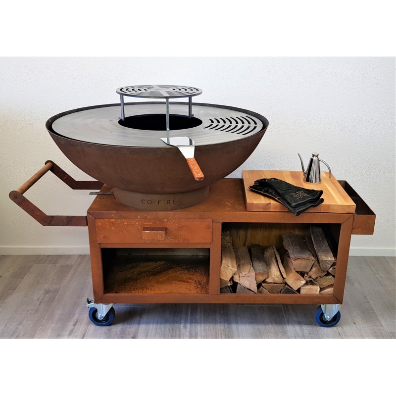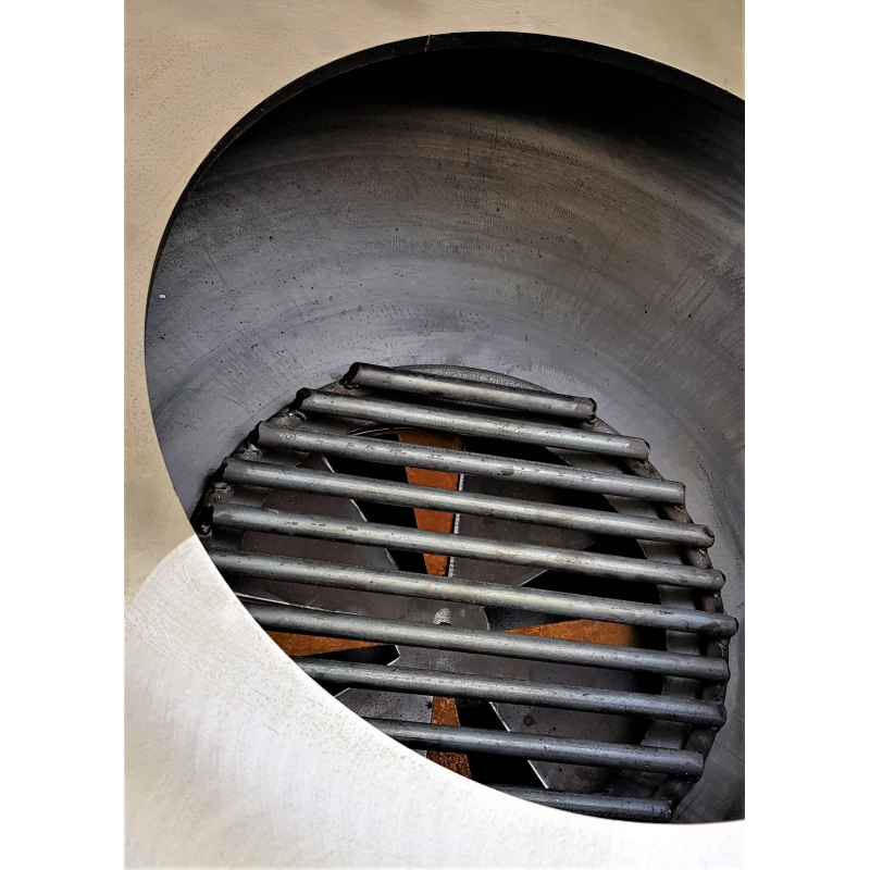 The Corten steel fire bowl 90 is the best-quality equipment for fire bowls because of the refractory (does not warp) and it is less prone to rust such as steel. As the distance between the 90 cm fire bowl and the GrillRing is larger, there is an optimal air circulation and the grass can easily flow into the bowl. Remove the GrillRing and you can enjoy the bowl fully as fire bowl.