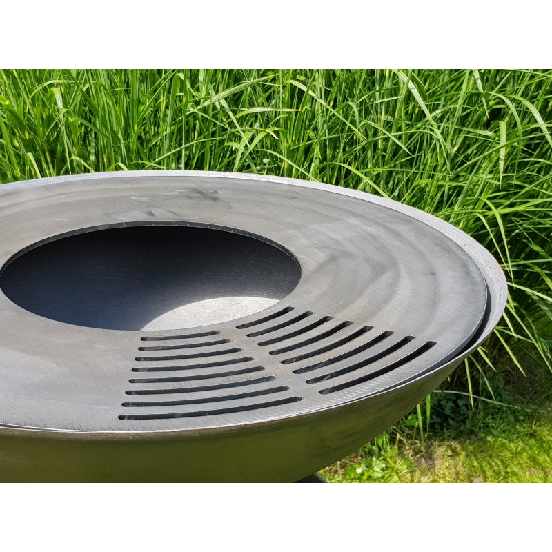 The Corten steel fire bowl 88-90 cm and 3 mm thick is the best quality equipment for fire bowls because of the refractory (does not warp) and it is less prone to rust such as steel. Remove the GrillRing and you can enjoy the bowl fully as fire bowl.