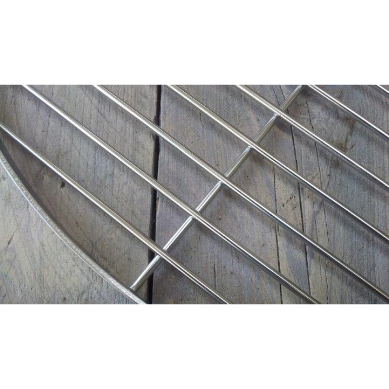 The stainless steel grills are made from qualitative superior stainless steel material. Easy to clean and very hygienic. The space between the rods is approx. 2 cm and they are 0,5 cm thick.