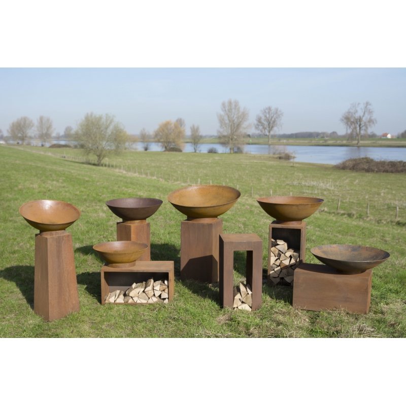 De Cortenstalen Ring 38/6 cm wordt gebruikt in combinatie met de gietijzeren schalen van 80 en 90 cm en de diepe cortenstalen schalen van 70 en 80 cm.