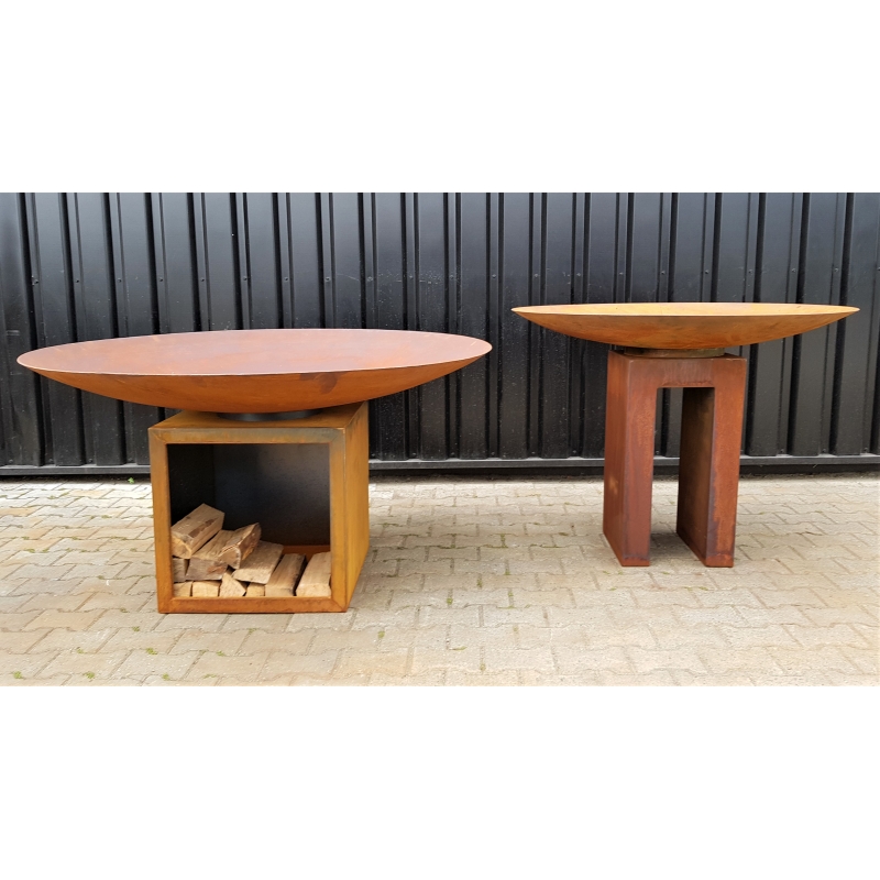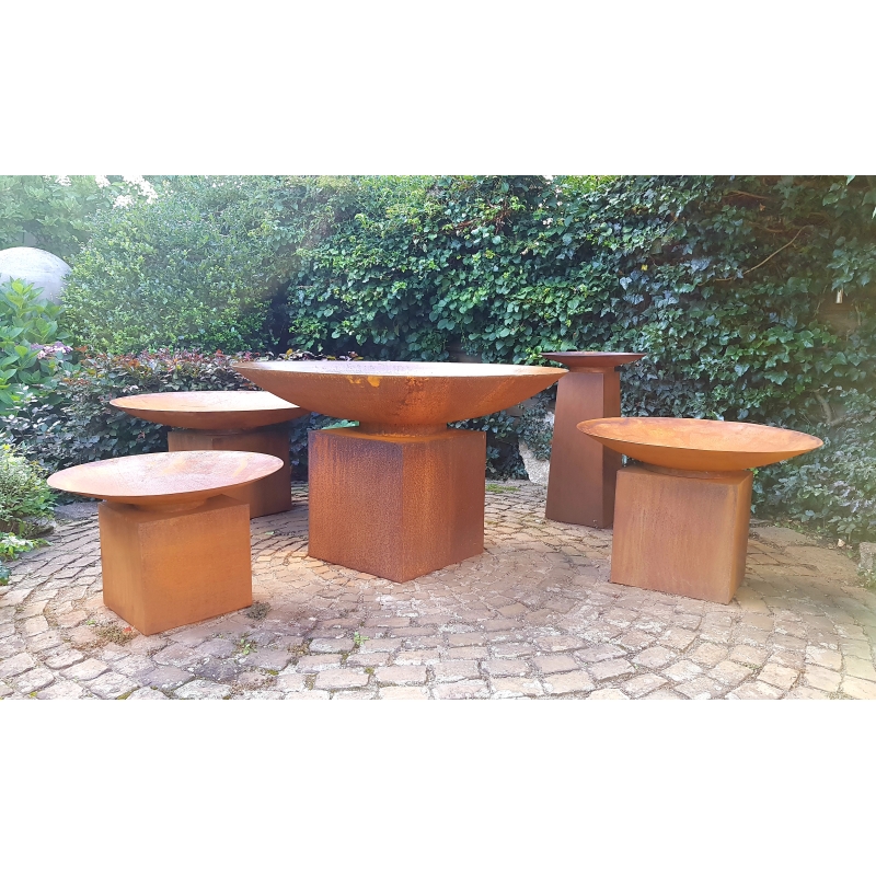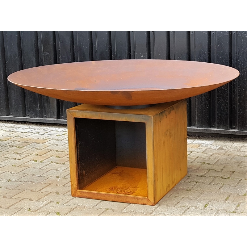De elegante Cortenstalen vuurschaal 150 X-Plat heeft een diameter van 150 cm. De schaal is voorzien van een losse Cortenstalen ring. |