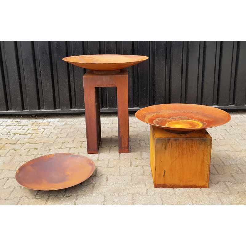 Op deze 70 cm vuurschaal past de cortenstalen afdekplaat The Top 75. Deze schaal komt goed tot zijn recht op The Cube 40, The Column 30 en de The Vase, zie Zuilen.