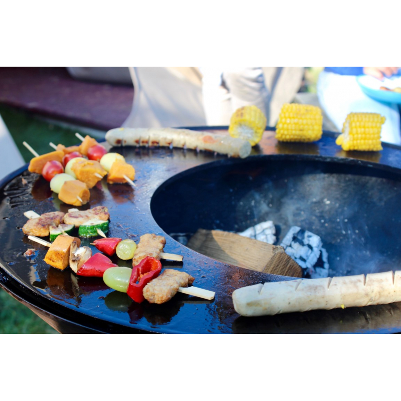 Deze Gietijzeren vuurschaal 72 heeft een dooirsnede van 72 cm en is een kwaliteitsproduct. Gietijzer behoort tot de hittebestendige staalsoorten en is daarmee kwalitatief het beste materiaal voor vuurschalen, zeker indien u regelmatig stookt. De Cortenstalen of RVS ring 33/6 geeft de nodige Stabiliteit en men kan de schaal in de schuine positie kan kantelen, Deze ring is afzonderlijk te bestellen!