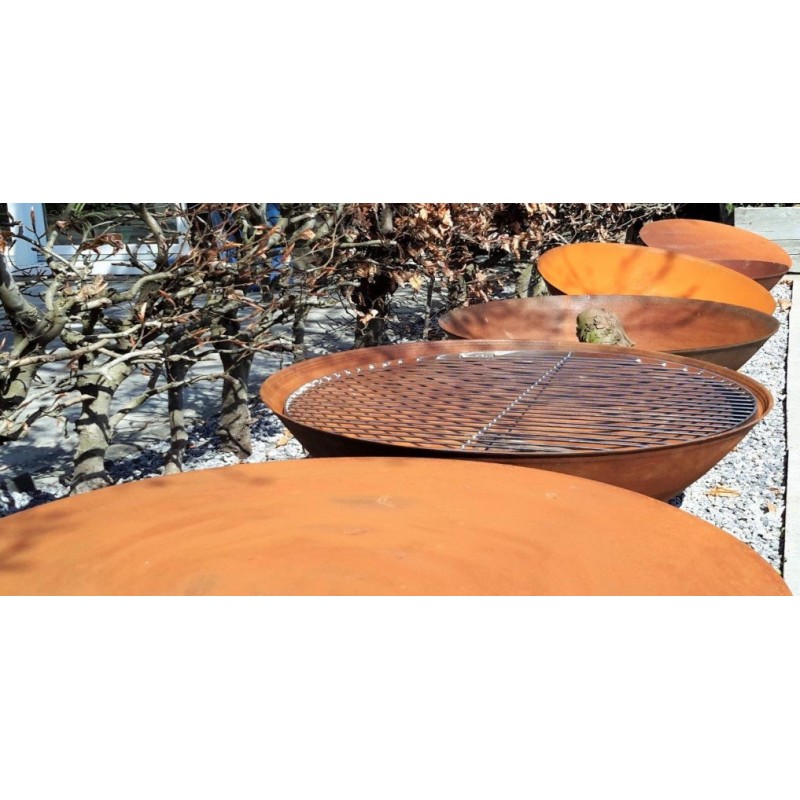 Op deze 72 cm vuurschaal past de ronde RVS Grillrooster 65 en ook The GrillRing 72 en de afdekplaat The Top 75 .