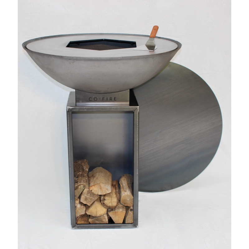 De Woodstock is een zuil van Cortenstaal van 40x40x75 cm, die niet alleen de GrillRing tot de gewenste kook hoogte brengt, maar ook de mogelijkheid tot houtopslag geeft. U kunt de Woodstock ook horizontal opstellen en zo de schaal op zithoogte brengen.